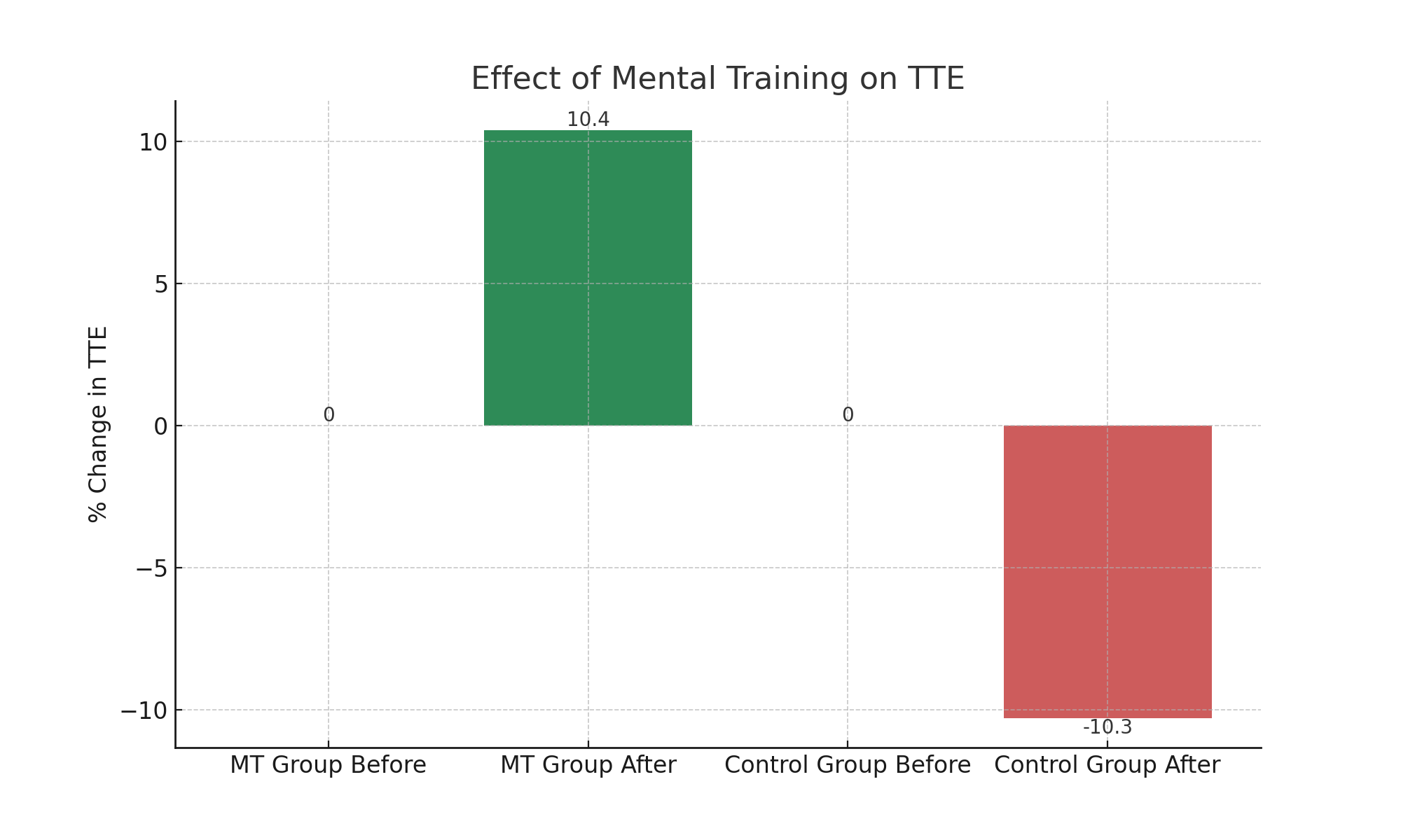 En studie publisert i mai 2023 utforsket hvordan mental trening (MT) kan øke mental utholdenhet. 33 deltakere ble delt inn i en MT-gruppe og en kontrollgruppe (CON). MT-gruppen brukte mental trening i 10-15 minutter daglig i tre uker, mens kontrollgruppen ikke utførte mental trening. Resultatene viste at MT-gruppen hadde en signifikant økning i tiden til utmattelse (TTE) etter to uker, med en økning på 10%, og dette nivået ble opprettholdt etter tre uker. I motsetning reduserte TTE i kontrollgruppen.
